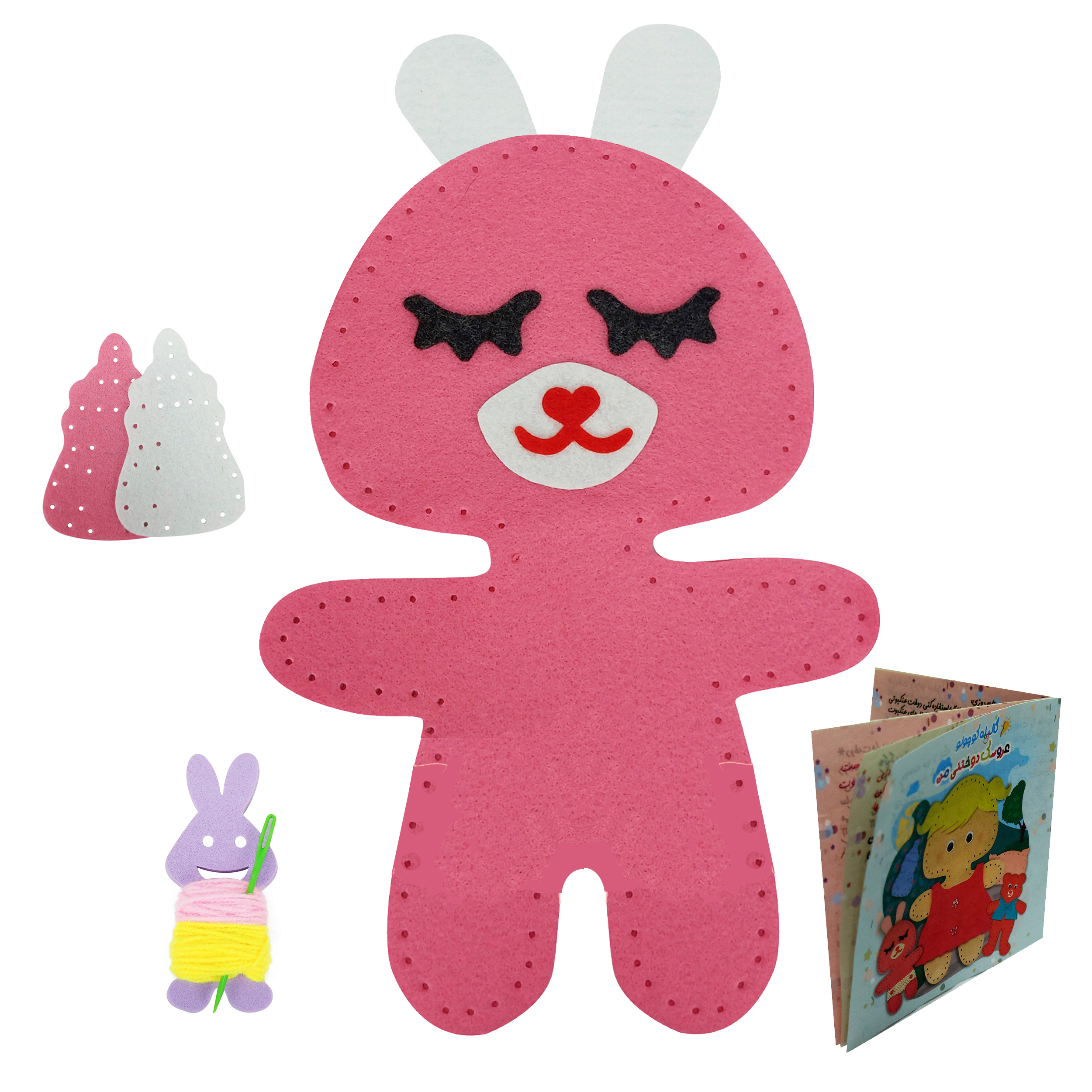 پک عروسکسازی شامل قطعات نمدی برشخورده، الیاف نرم و یک سوزن سرگرد پلاستیکی و ایمن است. کودک پس از دوختن قطعات و پر کردن آن با الیاف میتواند یک عروسک خرگوشک بامزه بسازد و از بازی با آن لذت ببرد. صفحات نرم و سبک، تجربه لمس دلنشینی ایجاد میکنند و فعالیت دوخت کاملاً ایمن است. این بسته تجربهای آموزشی، سرگرمکننده و خلاقانه برای کودک فراهم میکند.