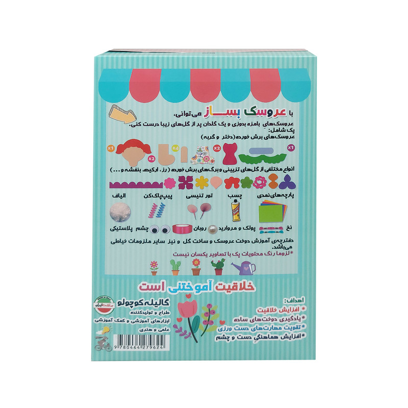 این پک به کودکان امکان میدهد عروسکهای بامزه دختر و گربه را بدوزند و یک دسته گل زیبا درست کنند. پک شامل قطعات برش خورده، دفترچه آموزش دوخت، پارچه نمدی، چسب، تور تنیسی، الیاف، چشم پلاستیکی، نخ، پولک و روبان است. همچنین گلهای تزیینی و برگهای برش خورده شامل رز، ارکیده، بنفشه، شقایق و میخک وجود دارند. این مجموعه مهارتهای دست و چشم، تمرکز و خلاقیت کودک را تقویت میکند و تجربهای آموزشی و سرگرمکننده فراهم میکند.
