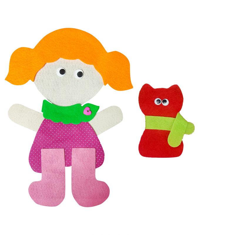 عروسکهایِ بامزه بدوزی و یک گلدان پر از گلهای زیبا درست کنی. پک شامل: عروسکهای برش خورده(دختر و گربه)